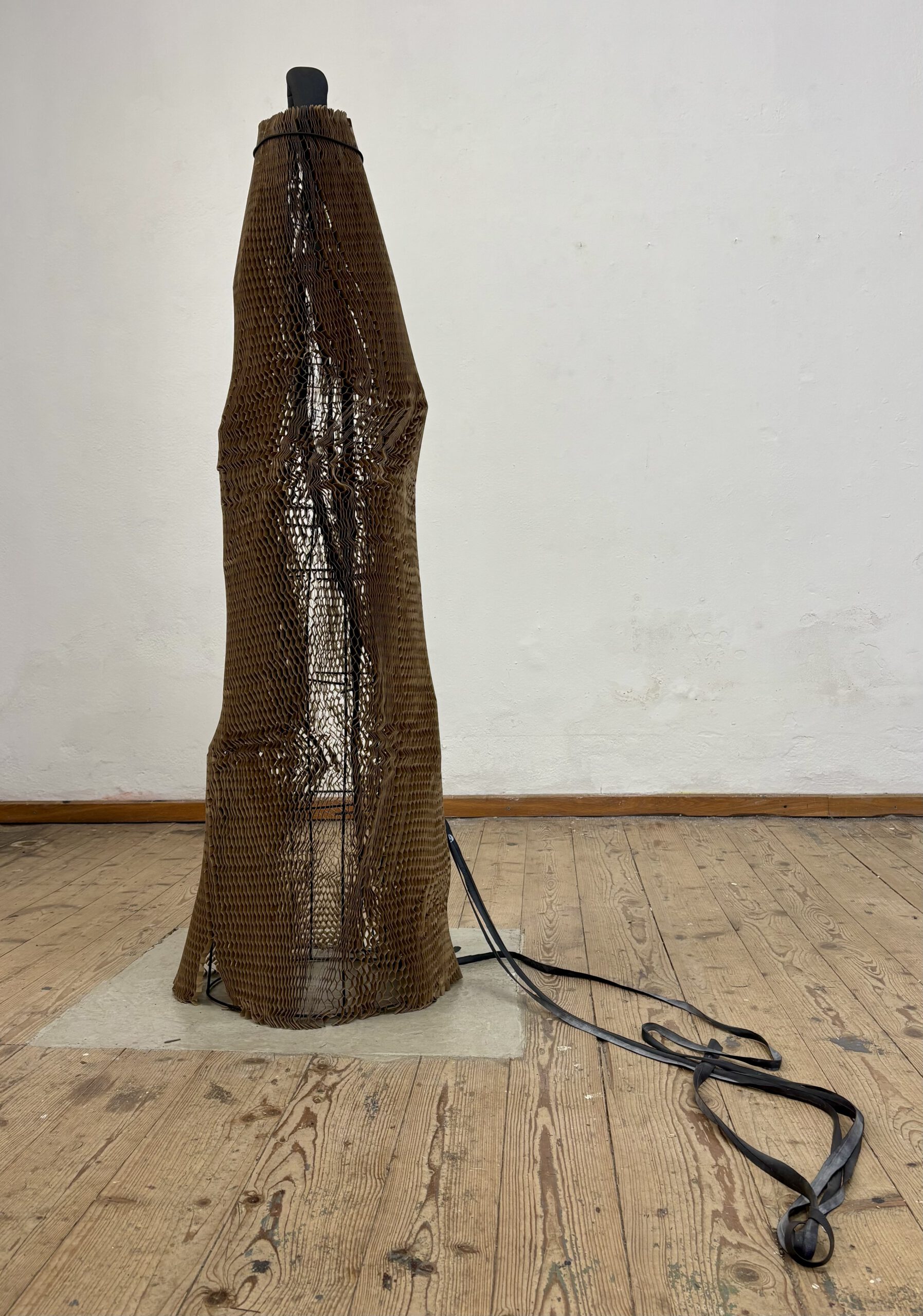 Gefangen im Wandel, Objekt 2025, 150x35x35cm, Papier und mixed media