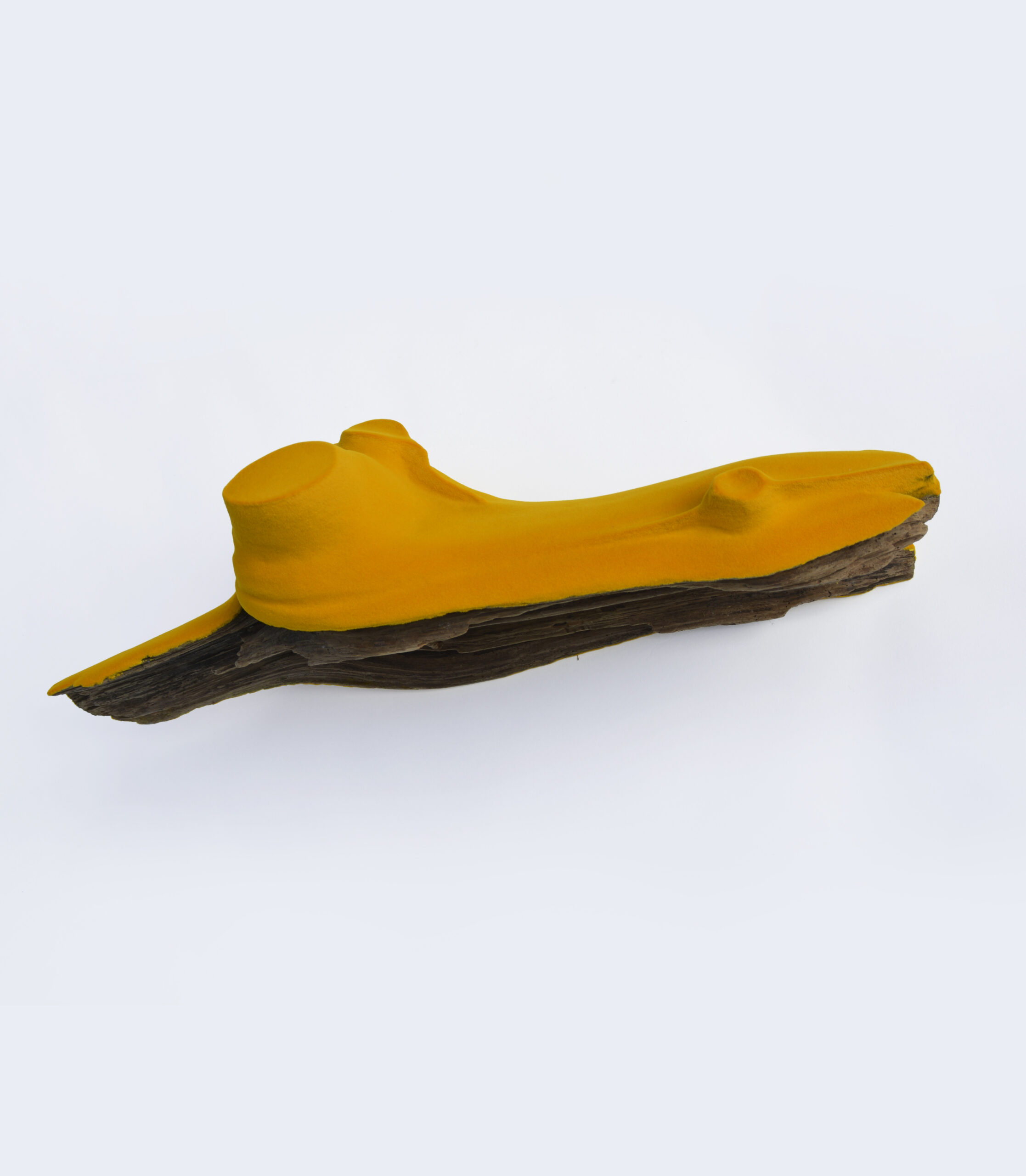 yellow No1, Objekt Holz und mixed media,2025, 55x25x15cm